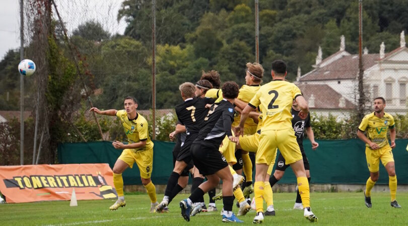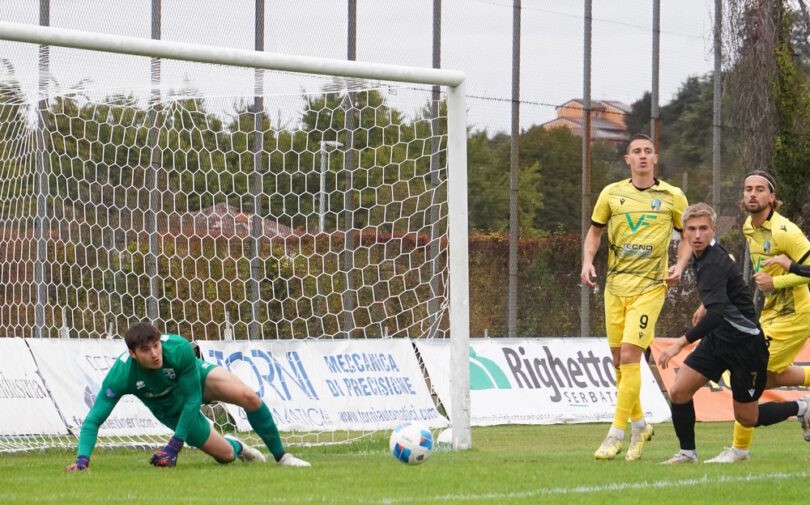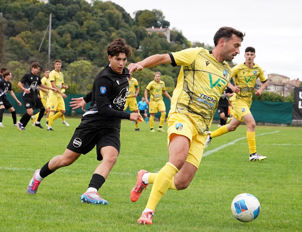 La partenza dell’Unione è al fulmicotone e già nei primi 15 minuti, gli undici di Beggio creano quattro occasioni per portarsi in vantaggio: al 2’ Righetti e al 4’ Peotta girano in porta di testa trovando le parate di Lombardi; Al 10’ Chajari tenta il tiro dal limite che gli viene deviato in angolo e al 12’ Righetti su tocco di Chinellato, si gira ma manda alto. Si vedono anche gli ospiti al 20’ con Mbup che colpisce di testa dall’angolo ma mette alto. L’Unione è martellante e ogni azione crea i presupposti per diventare pericolosa: la linea difensiva ospite però, riesce a sporcare l’ultimo passaggio o a salvarsi in extremis. Al 44’ è buona la ripartenza del Calvi Noale che arriva al tiro con Vranic: Mocanu accompagna fuori la palla con lo sguardo. Proprio allo scadere Lombari esce di pugno sul lungo cross di Chajari mettendo la palla sui piedi di Falchetto che prova il tiro ma alza la mira. Il secondo tempo Beggio opera subito due sostituzioni: il chiaro intento è quello di spostare e velocizzare il gioco sulle fasce, entra Zanini per Falchetto e sposta Bianchi 10 metri più avanti a destra; ma anche quello di alzare ancora di più il baricentro con Tirapelle al posto di Sacchetto. Le occasioni continuano: al 48’ il cross in area di Bianchi trova Righetti che gira di prima intenzione sfiorando il palo di una manciata di centimetri. Righetti ci riprova anche al 51’ con una rovesciata spettacolare che finisce, però, alta. Uguale risultato è la girata di testa di Chinellato al 53’. Ospiti che faticano a tenere il continuo pressing dell’Unione ma che sanno anche trovare degli spazi per dei, seppur sporadici, contropiedi come al 56’ con Compaore che dopo aversi fatto il campo calcia alto. Ma siamo subito dall’altra parte: Chinellato al 58’ tocca per Righetti, sponda per Tirapelle che si vede deviare il tiro a botta sicura, mentre un minuto dopo è Zanini che calcia fuori da buona posizione. Beggio cambia le pedine dell’attacco e mette Campion per Righetti e Arma per Chinellato mentre mister Vernucci è soddisfatto dei suoi e per il momento non muove le pedine in campo. Si arriva negli ultimi 10 minuti della gara: al 84’ sull’ennesimo cross, la palla sfugge all’Uno ospite e Arma la deposita in rete ma nell’incredulità generale il direttore di gara annulla per fuorigioco su segnalazione dell’assistente. Al 86’ dribbling di Silvestri ma davanti a Mocanu spara alto. L’Unione prova l’ultimo sforzo prima con Chajari al 88’, tiro di poco sopra la traversa, e poi con Arma che tocca di testa il cross di Chajari mettendo la palla ad un centimetro dal palo graziando l’estremo Lombardi. Brivido finale dalle parti della porta dell’Unione con Mocanu che al 91’ chiude la traiettoria della palla messa al centro area dalla destra e impedisce il probabile tap-in di Vranic. Ultimi minuti se ne vanno tra perdite di tempo e un ultimo cambio (50’st) del Calvi Noale.