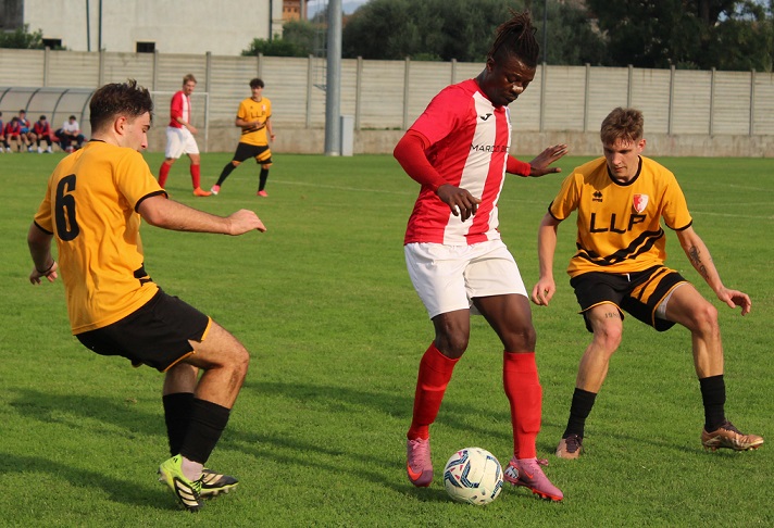 Nel momento cruciale della partita, un episodio clamoroso ha fatto pendere l’ago della bilancia per i bianco- rossi ospiti con un intervento scomposto del portiere Rossi al minuto 44’ sull’attaccante Fall con un atterramento da rigore, ma l’arbitro inverte la punizione tra lo stupore di tutti. Per il resto è tanto Trissino, possesso, gioco, tanti calci d’angolo sintomo di un predominio territoriale lampante.