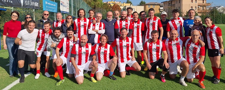 La squadra dei giornalisti con (tra gli altri) Tamiozzo, Ceroni, Meneguzzo, Milano, Federico e Luca Ballardin, Negrin, Dellai, Bonacini, Lancellotti: un arrivederci sui campi di gioco !
