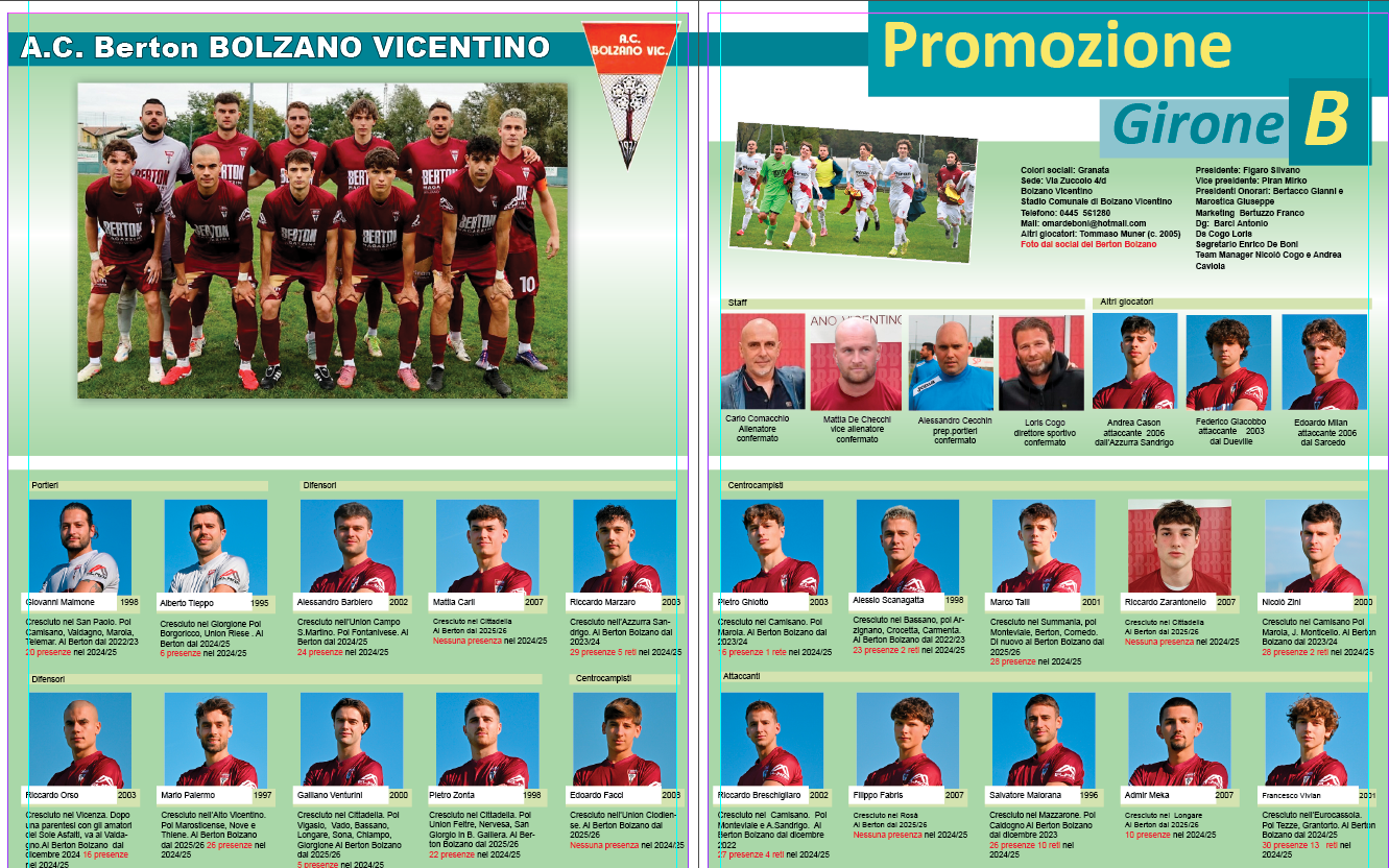 Almanacco: Ecco una nuova pagina dell’Almanacco on line di calciovicentino . Oggi tocca al Berton Bolzano (Promozione B) e con le fote messe a disposizione dalla società, le schede dei giocatori, i dati della società e l’organigramma.