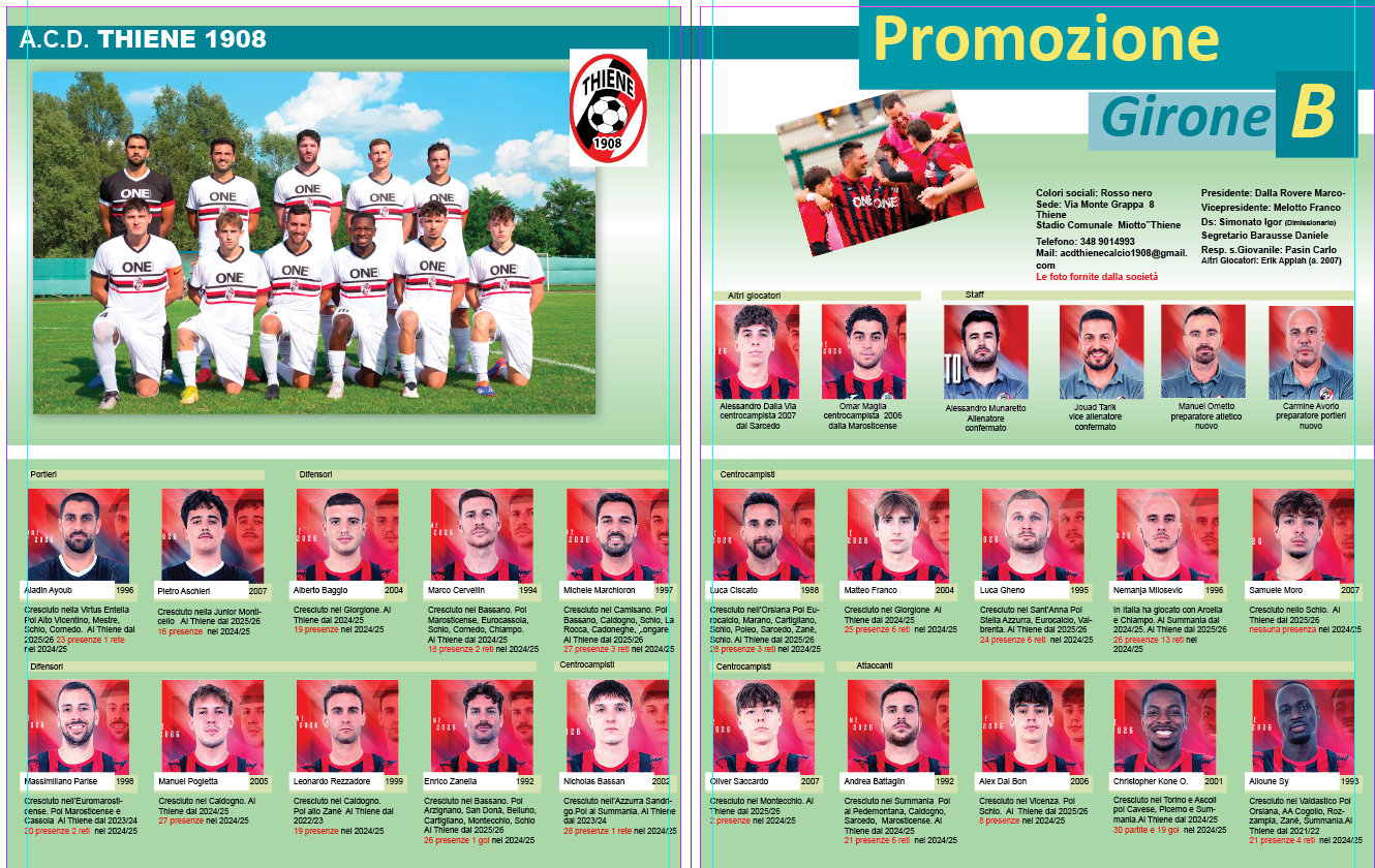 Almanacco: Ecco una nuova pagina dell’Almanacco on line di calciovicentino . Oggi tocca al Thiene (Promozione B) e con le fote messe a disposizione dalla società, le schede dei giocatori, i dati della società e l’organigramma.