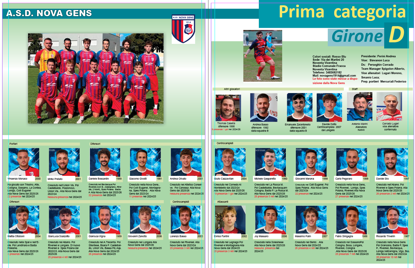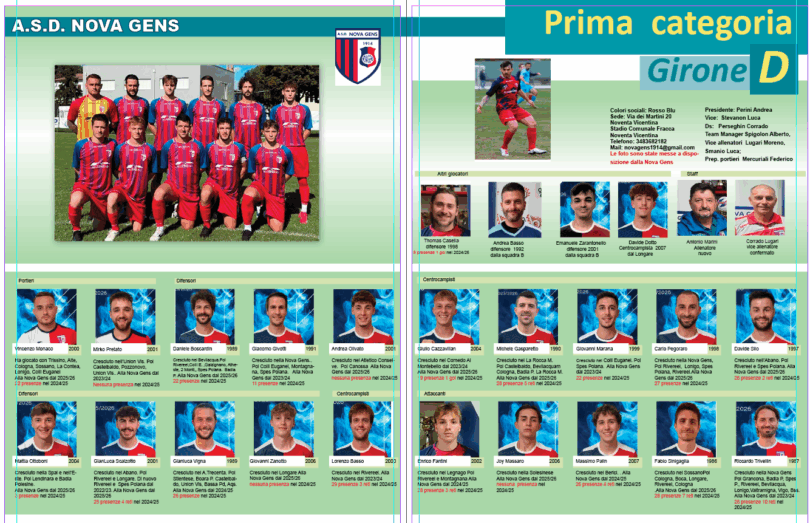 Almanacco: Ecco una nuova pagina dell’Almanacco on line di calciovicentino . Oggi tocca alla Nova Gens (Prima categoria D ) con le foto messe a disposizione dalla società, le schede dei giocatori, i dati della società e l’organigramma.