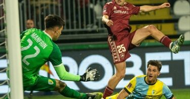 Qualche minuto più tardi, altro cross di Mobilio e testa di Coniglio, anche in questo caso fuori di poco.