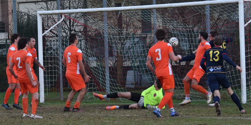 Subito mister Valente corre ai ripari, toglie Marzari per immettere Peruzzi, un difensore per ovviare alla mancanza del capitano. L’uomo in più del Maddalene doveva essere la possibilità per i padroni di casa di girare la gara dalla propria parte, invece sono stati gli ospiti a condurre il gioco, trovando il gol del vantaggio con Erba al 91’ che sfrutta una indecisione dei difensori e gira in rete appostato in prossimità della linea di porta.