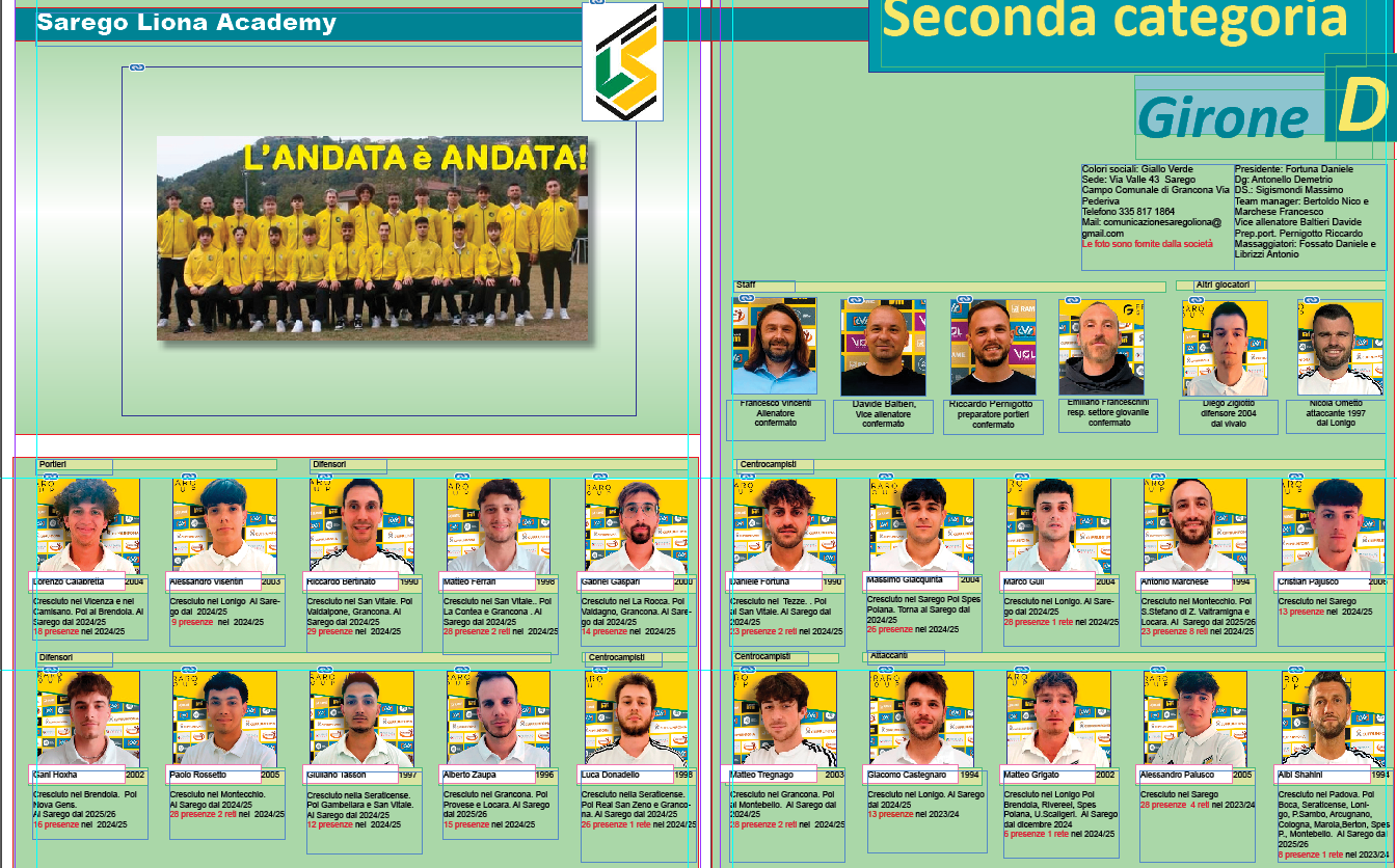 Almanacco Proseguiamo la pubblicazione dell’Almanacco: questa è la pagina del Sarego con le foto pubblicate sul sito della società