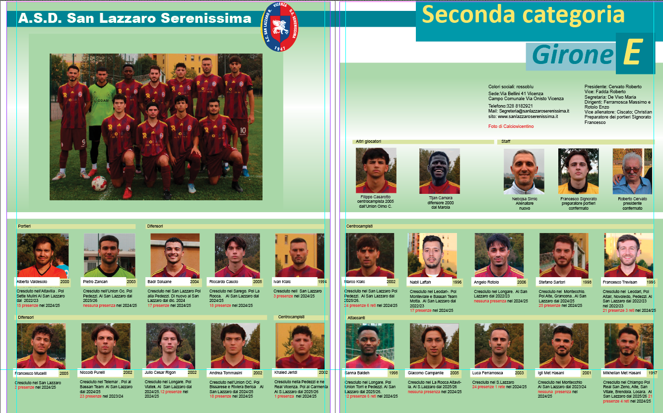 Almanacco Proseguiamo la pubblicazione dell’Almanacco: questa è la pagina del San Lazzaro con le foto di calciovicentino
