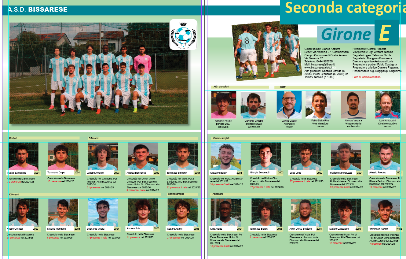 Almanacco Proseguiamo la pubblicazione dell’Almanacco: questa è la pagina della Bissarese con le foto di calciovicentino