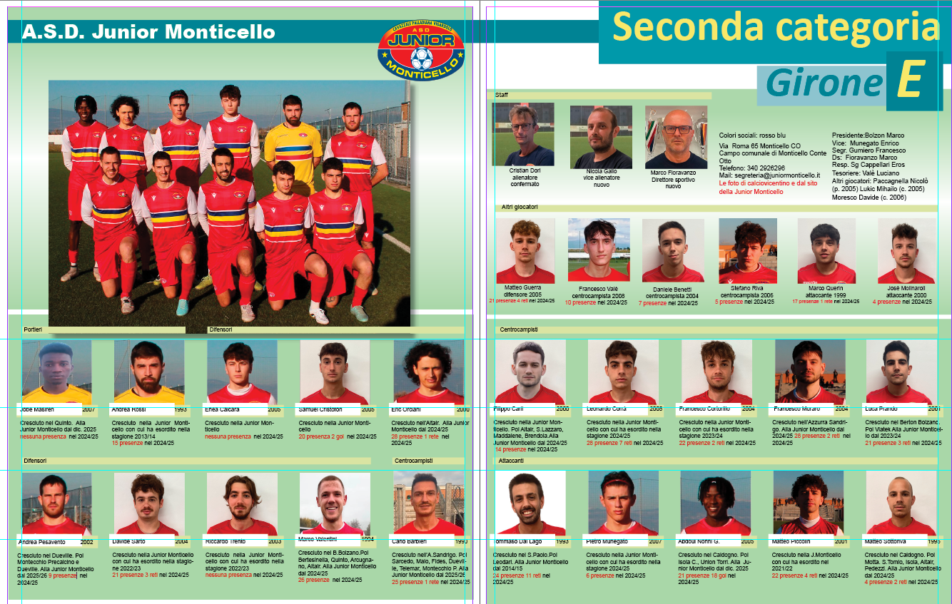 Almanacco Proseguiamo la pubblicazione dell’Almanacco: questa è la pagina aggiornata del Junior Monticello con le foto di calciovicentino e dal sito della società;