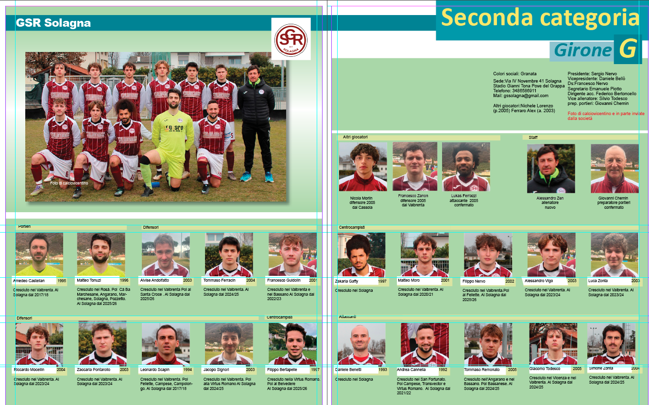 Almanacco Proseguiamo la pubblicazione dell’Almanacco: questa è la pagina del Solagna con le foto di calcio vicentino e della società;
