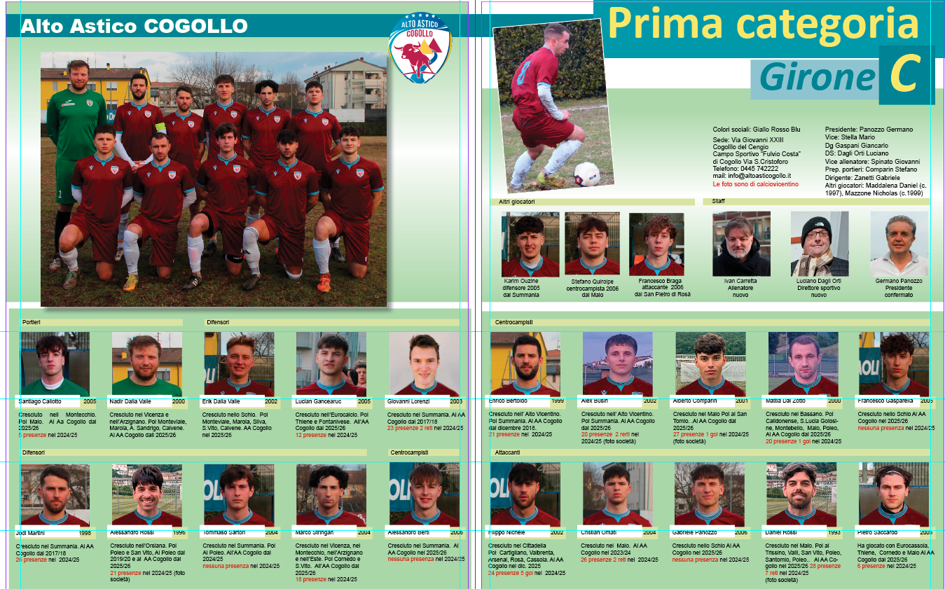 Almanacco Proseguiamo la pubblicazione dell’Almanacco: questa è la pagina dell’Alto Astico Cogollo con le foto di calcio vicentino e della società;