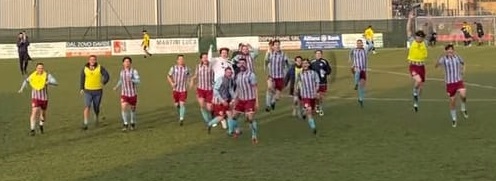 Al quarto d’ora della ripresa una imperfezione difensiva dei locali fa arrivare la palla ad Ometto che calcia in porta e complice una deviazione decisiva permette di raggiungere il pareggio realizzando la propria doppietta personale.