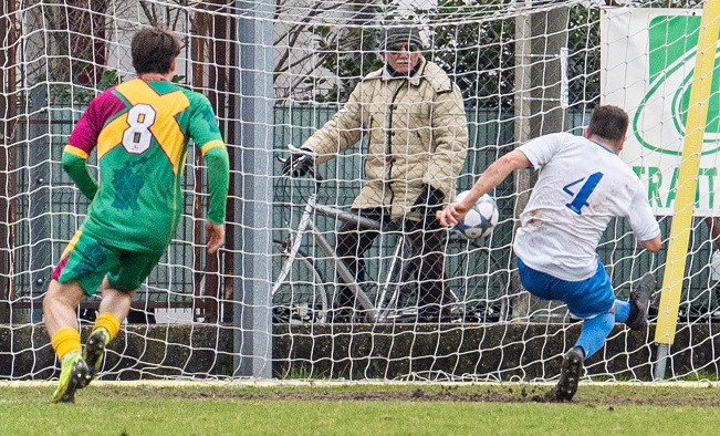 Giacobbo cerca di impedire il gol senza riuscirci