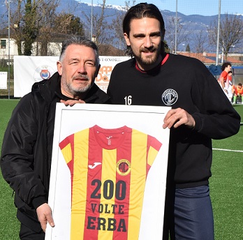 Monteviale: prima della gara con il Real Stroppari, il Presidente del Monteviale Enrico Bedin ha omaggiato il giocatore Marco Erba con una maglietta ricordo a coronamento delle 200 gare disputate con la maglia giallo/rossa, Ieri anche il capitano Davide Perucca ha festeggiato le 250 gare con il Monteviale. Complimenti a questi due “ragazzi” anche dalla redazione di “CALCIO VICENTINO”