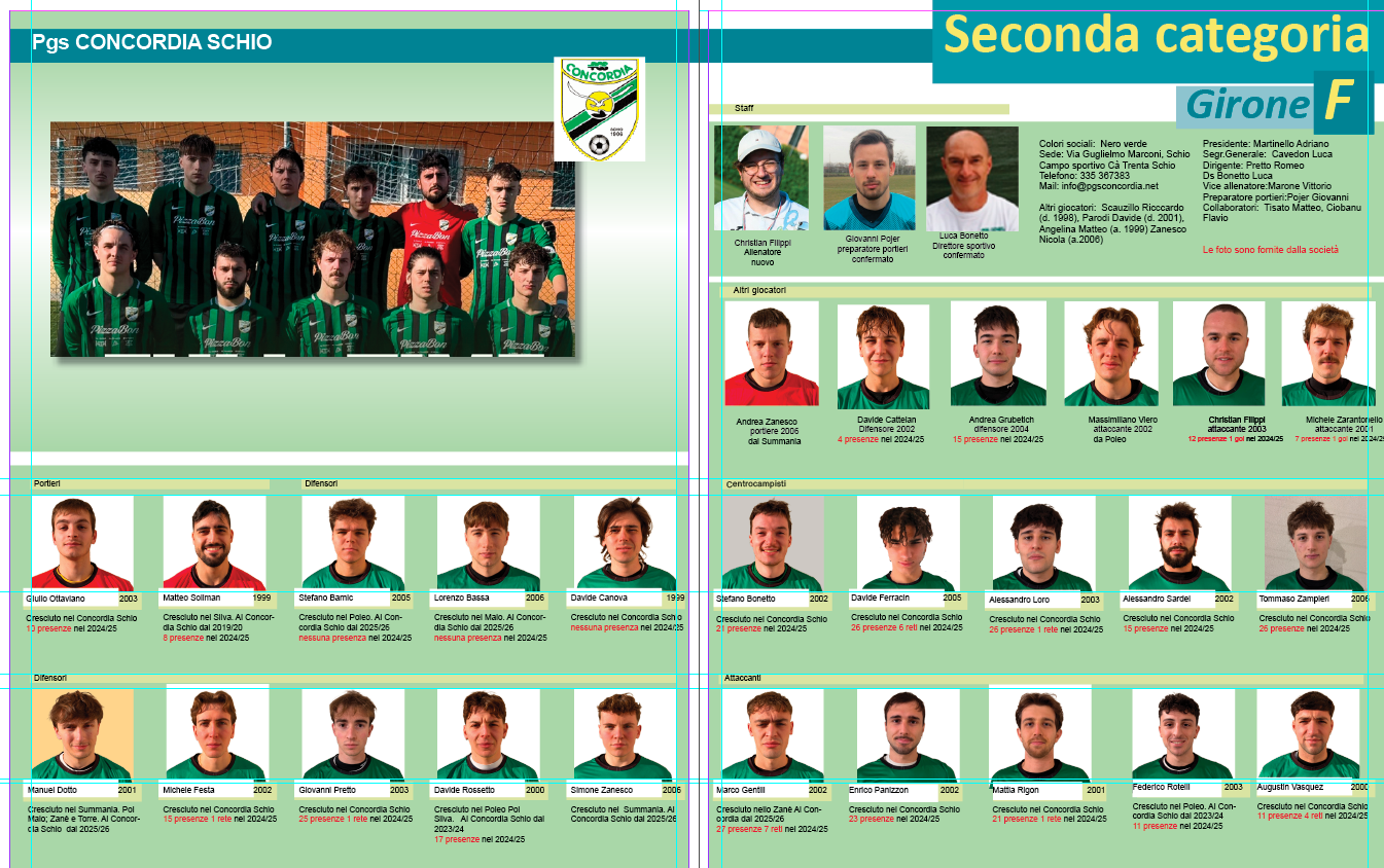 Almanacco Proseguiamo la pubblicazione dell’Almanacco: questa è la pagina del Concordia Schio con le foto fornite dalla società