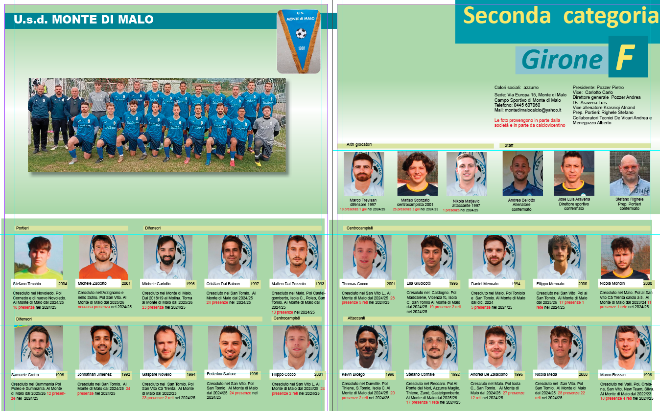 Almanacco Proseguiamo la pubblicazione dell’Almanacco: questa è la pagina del Monte di Malo con le foto di calciovicentino e in parte fornite dalla società