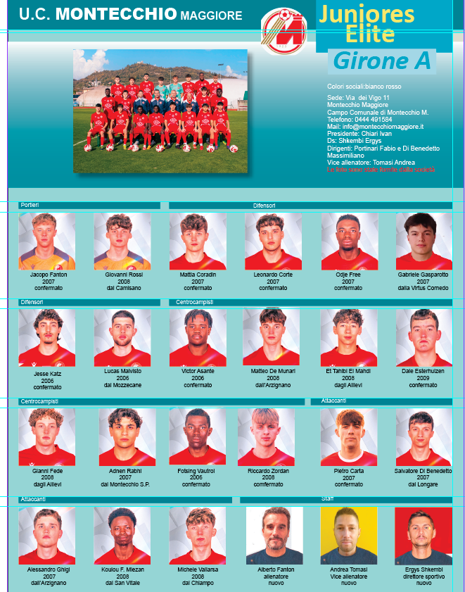 Almanacco Proseguiamo la pubblicazione dell’Almanacco: questa è la pagina della Squadra Juniores Elite del Montecchio Maggiore con le foto dal sito dalla società