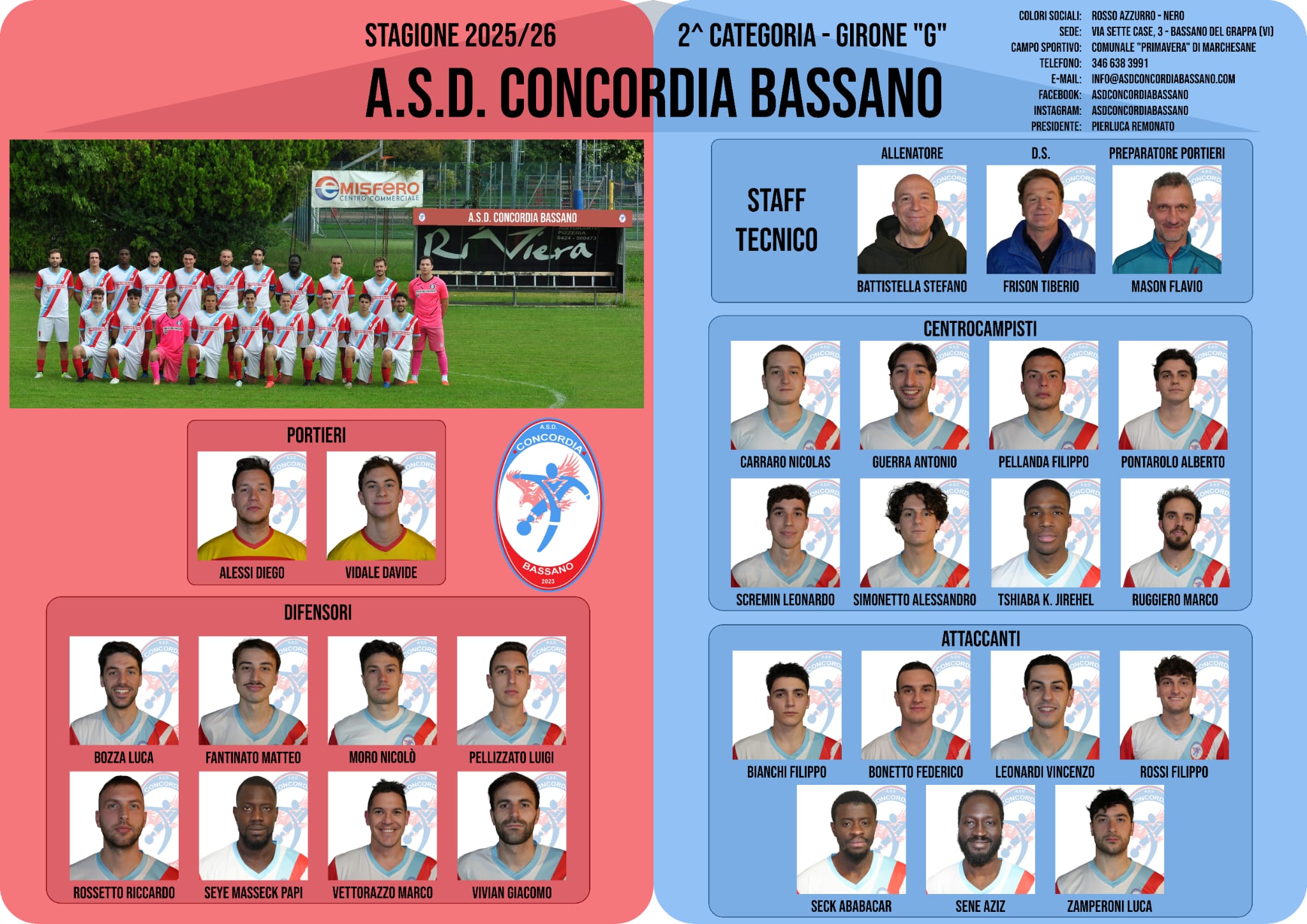 Almanacco Proseguiamo la pubblicazione dell’Almanacco: questa è la pagina del Concordia Bassano con le foto di Dario Vanin