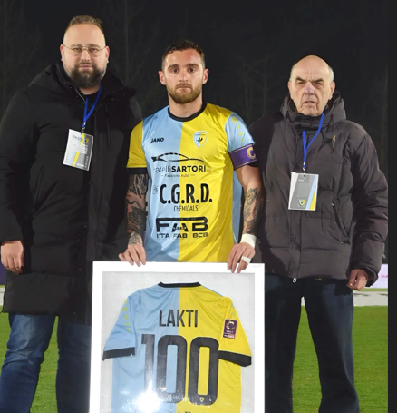 Arzignano: Il centrocampista Erald Lakti stacca il traguardo delle 100 presenze in Gialloceleste. Raggiunte domenica 15 febbraio 2026 nel corso della 27^ Giornata di Serie C Sky Wifi all’Albinoleffe Stadium, il nostro numero 6 ha festeggiato le cento volte in cui è sceso in campo con la maglia dell’Arzignano Valchiampo. Classe Duemila, da luglio 2023 veste i nostri colori che ha portato anche sul palco del Gran Gala’ del Pallone d’Oro, evento organizzato da Il Giornale di Vicenza in collaborazione con TvA Vicenza, quando a giugno 2024 è stato premiato come miglior giocatore FC Arzignano Valchiampo della stagione 2023/2024. Sono più di 7500 i minuti giocati con la sua maglia tra Campionato, Coppa Italia e Play Off, 13 le reti firmate e 4 gli assist. Punto fermo del nostro centrocampo, con le sue qualità e i suoi valori è da sempre un calciatore importante per la nostra squadra e per il nostro spogliatoio. Già Capitano della Primavera della Fiorentina, lo scorso 8 novembre ha debuttato in campo nei Professionisti con la fascia al braccio e oggi è uno dei nostri Capitani. A premiarlo, con una maglia celebrativa, nel pre-partita di Arzignano Valchiampo-Novara valida per la 29^ Giornata di Serie C Sky Wifi, i membri del CdA Enrico Gastaldello e Silvano Faedo a nome di tutto il club.