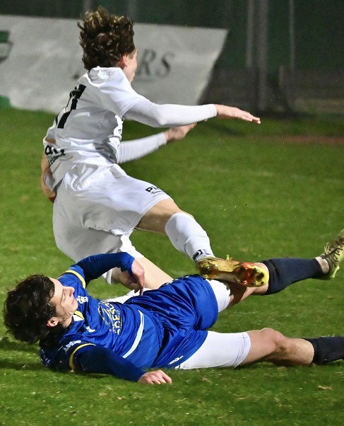 Particolarmente vivace, come già accaduto con il Trissino l’esterno ex Sarcedo: al 16’ lascia partire, sugli sviluppi di punizione uno spiovente dalla sinistra controllato in due tempi da Marchetti, che evita guai peggiori anticipando i saltatori avversari. Tenta di emergere allora il Baldo, sorretto dai suoi valori individuali: Turrini prende in mano le redini del centrocampo organizzando con estrema precisione e pulizia tecnica le sortite offensive sue e dei compagni, Ferrarini invece cerca di aprire varchi nella difesa locale favorendo gli inserimenti delle mezzeali e degli esterni d’attacco. Il goal del vantaggio i blu l’avrebbero pure trovato, al 22’: calcio piazzato da posizione defilata, Tuzzo buca Maimone, con la sfera che passa tra una selva di gambe e supera la linea di porta. Rete annullata però dal direttore di gara, su suggerimento del primo assistente per via di una posizione irregolare ravvisata in mischia.