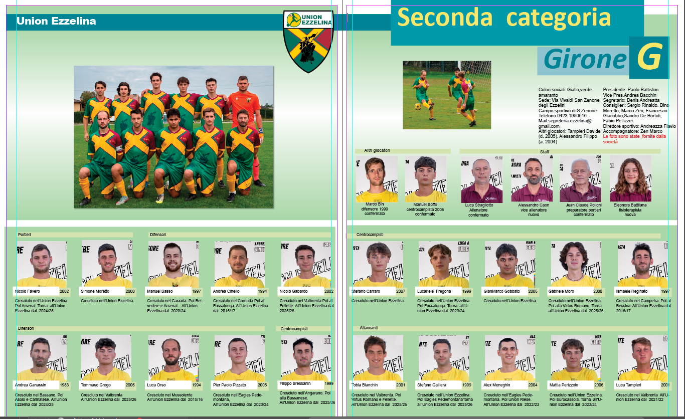 Almanacco Proseguiamo la pubblicazione dell’Almanacco: questa è la pagina dell’Union Ezzelina con le foto fornite dalla società
