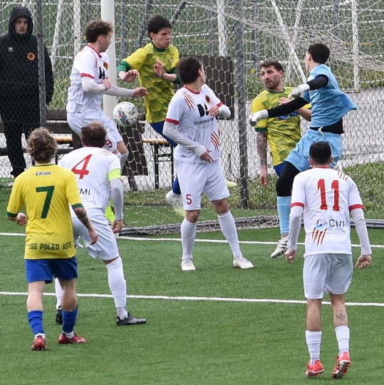 Qualche minuto dopo altro grave svarione difensivo dei ragazzi del Poleo, appoggio difensivo rischioso verso il portiere che tenta il rinvio, si interpone Carmucci che ne contrasta il rinvio e la palla in modo beffardo va a concludere la propria corsa nella porta sguarnita.
