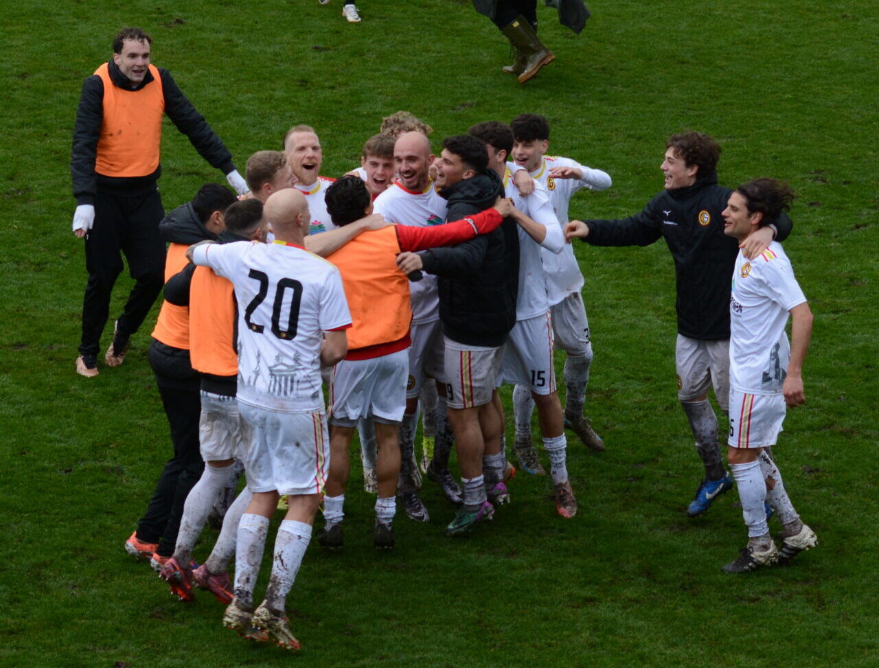 Tra le tante cartoline di questa memorabile domenica, stampiamo ed incorniciamo la celebrazione liberatoria del gigante giallorosso, ai box per ben due volte tra fine settembre e metà febbraio, impossibilitato di garantire quel prezioso contributo ammirato ad inizio stagione ed oggi tornato al gol davanti alla sua gente! Altro da aggiungere? Ah sì, la festa al triplice fischio dinanzi ad una tribuna colorata da bandiere e fumogeni. Una pagina di storia si è già scritta in questa domenica per la società ed una città intera. Questa squadra meravigliosa dà ancora un saggio delle proprie qualità e raccoglie giorno dopo giorno i frutti del grande lavoro svolto costantemente da agosto ad oggi. La classifica è eloquente: +10 sull’Ambrosiana, +12 sulla Villafranchese. Cinque giornate da vivere ancora col coltello tra i denti, per certificare quel grande sogno!