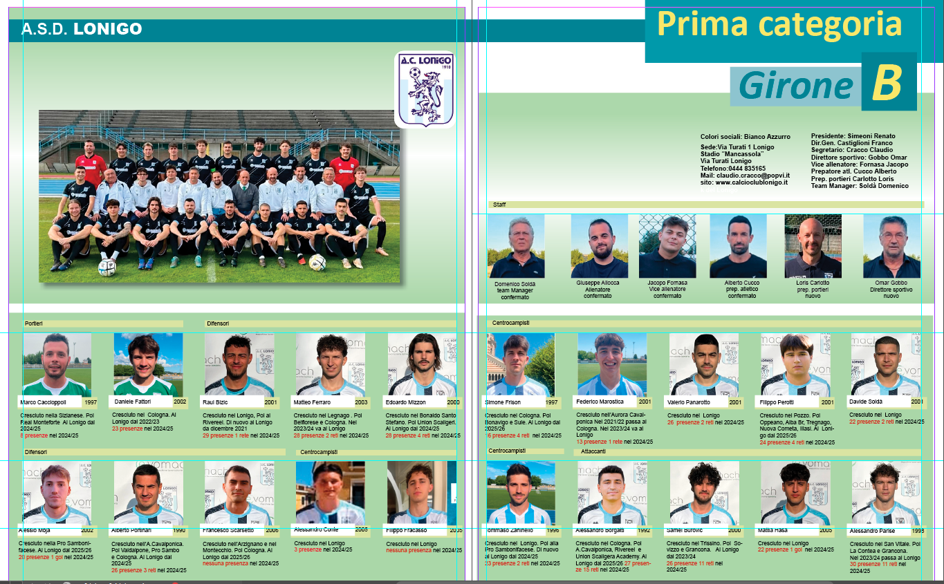 Almanacco Proseguiamo la pubblicazione dell’Almanacco: questa è la pagina del Lonigo con le foto fornite dalla società