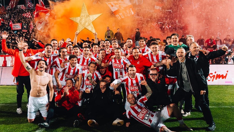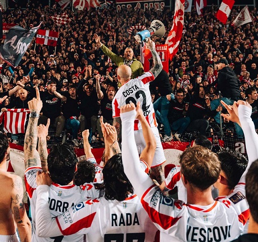Prima di parlare di partite e classifiche, non possiamo che tornare alla festa del Menti del fatidico 13 marzo 2026, un lunedì-sera destinato a rimanere iscritto negli annali della lunghissima gloriosa storia del Lanerossi Vicenza. Sarò breve perché tanta e tale è stata la bagarre emotiva vissuta in campo e sugli spalti – per non parlare degli articoli e servizi della carta stampata, radio e tv – da far pensare che un po’ tutti i vicentini, tifosi e non, chi più chi meno, siano rimasti coinvolti nella vicenda della promozione del Lane in serie B. C’era un’attesa fortissima per questa partita contro l’Inter U23, per ovvie ragioni, facilmente intuibili. Su tutte, se il Lane avesse vinto la partita, l’aritmetica con la A maiuscola avrebbe sentenziato il salto “ufficiale” in serie B, ipotesi certamente prevedibile, anche se con il calcio di qualsiasi categoria certezze totali non possono esserci. Vuoi mettere però vincere un lunedì sera e chiudere qui, a sei giornate dalla fine, ogni “problema”, ogni ulteriore attesa? Per poi godersi le partite successive giocando tranquilli seppure impegnati a fare altri punti. La tifoseria biancorossa organizzata, del resto, ci aveva visto giusto invitando tutti allo stadio con sciarpe, bandiere e altri accessori distintivi – e i vicentini a casa all’esposizione delle bandiere biancorosse ai balconi e terrazze –, proprio per creare quel clima di festa e di spinta ai giocatori in campo che rende il Menti una piazzaforte quasi inespugnabile. Poi, la squadra dell’Inter U23 non è una formazione qualsiasi, visto il nome che porta, ma anche e soprattutto per via del mister che la guida, ossia Stefano Vecchi che – come noto – qui a Vicenza ha vissuto due grandi stagioni indimenticabili per il bel gioco espresso e i risultati ottenuti, sebbene, e pure per una buona dose di malasorte, non sia riuscito a portare il Lane in serie B. A tal proposito va sottolineata la bella dichiarazione sportiva di mister Gallo che, pur travolto dall’euforia generale di fine partita, ha dato atto al collega di panchina di aver contribuito con il suo lavoro, nel corso delle due stagioni precedenti, all’exploit del Lane targato 2025/’26, il suo. Un’altra ragione per vincere era legata al ricordo della partita dell’andata di novembre contro gli interisti a Monza, quando il Lane, pur in dieci uomini per un tempo, era riuscito a risolvere la partita proprio negli ultimi minuti, incamerando anche una determinante svolta psicologica e di autostima che l’avrebbe accompagnato nei mesi successivi: vittoria importante allora, ma da replicare lunedì sera per dimostrare la superiorità sulle giovani promesse nerazzurre. Così è stato e, come detto e ormai risaputo, alla fine di Vicenza-Inter U23, tutto è diventato frenesia liberatoria.