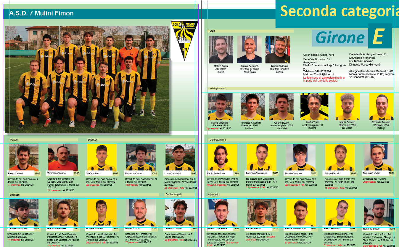 Almanacco Proseguiamo la pubblicazione dell’Almanacco: questa è la pagina del 7 Mulini con le foto di calciovicentino e in parte fornite dalla società