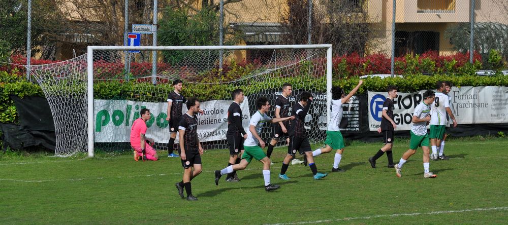 I festeggiamenti per il 2-2, tra lo sconcerto dell’estremo portiere del Concordia