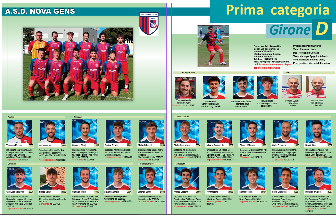 Almanacco Proseguiamo la pubblicazione dell’Almanacco: questa è la pagina della Nova Gens, aggiornata con le novità del mercato di dicembre, con le foto fornite dalla società. Sono usciti mister Marini e i giocatori Boscardin, Fantini e Basso Andrea e sono entrati mister Lugari e il secondo Smanio e i giocatori Solito, Lazzarin e Bellon.
