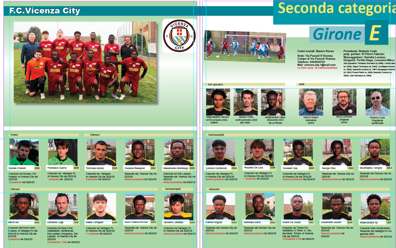 Almanacco Proseguiamo la pubblicazione dell’Almanacco: questa è la pagina del Vicenza City con le foto di calciovicentino