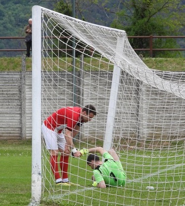 Eppure la gara è stata anche costellata da episodi che sembravano non girare a favore dei biancorossi; dopo 14′ minuti un giocatore del Camisano innesca un pallonetto da metà campo: il portiere trissinese Rossi retrocede rapidamente per evitare la rete e batte contro il palo della porta. Infortunio abbastanza grave al giocatore con intervento dell’ambulanza e trasporto all’Ospedale di Valdagno e sospensione della partita per un quarto d’ora per ripristinare il palo demolito dal giocatore.