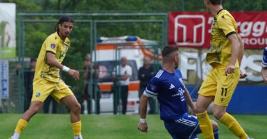 L’Unione, nella 32^ giornata del girone C del campionato di serie D, conquista un importantissimo punto sul campo dell’Obermais Maia Alta, che, in ottica salvezza e dai risultati arrivati dagli altri campi, ne vale tre. Una gara di sofferenza, ma non poteva essere altrimenti, in casa di una squadra, l’Obermais, che tra le mura amiche è un osso durissimo sa superare. La prima parte di gara è più vivace e interessante: le due squadre si equivalgono, entrambe prestano molta attenzione alle coperture ma appena trovano un varco cercano l’occasione. Al 1’ l’Obermais tenta di sorprendere Mocanu su calcio piazzato da 25mt ma l’uno ospite è attento e devia in angolo. Subito la reazione dell’Unione che si presenta con Righetti che allunga per arma ma il cross è presa di Tanderini. Altro botta e risposta al 8’ e 9’ minuto: prima Stecher calcia sull’esterno della rete e poi Trevisan di testa la mette appena a lato dal buon cross di Pettinà. Dal quarto d’ora, l’Unione alza il ritmo e trova tre situazioni interessanti: 12’ Arma gira di testa, ma sul fondo, il solito preciso cross da destra di Cherubin; Righetti al 22’ scappa a Demetz e allunga per Arma ma la conclusione è deviata dai difensori. Al 31’ Arma tocca per l’accorrente Bianchi che alza di poco la mira. Si rivedono i padroni di casa al 33’ con Bauerfeind liberato in area da Ghiotti, ma il pallonetto tentato su Mocanu non riesce e finisce alto. Ritorna in avanti l’Unione al 37’ con Cherubin che si accentra da destra e conclude con il mancino ma è murato. Prima del tè, Sacchetto, da rimessa laterale, trova la testa di Arma ma la girata è debole e finisce tra le braccia di Tanderini. La ripresa si lotta subito a centrocampo ma le due squadre si annullano. Al 10’st l’episodio che potrebbe far cambiare la partita: Sacchetto è saltato da Stecher e lo strattona: il direttore di gara è di manica parecchio larga e lo manda anticipatamente sotto la doccia: la conseguente punizione di Ngom finisce in montagna. I giallonero-biancoblu hanno il merito di non scomporsi e si riorganizzano: Sambugaro inserisce Garbin per Boni per arginare i padroni di casa che però non riescono a creare situazioni favorevoli. Dalla panchina di casa i cambi aumentano il peso in avanti ma l’Unione si chiude bene. Al 25’st Obermais dall’angolo, palla in uscita e Stecher calcia alto. La pressione dei padroni di casa tende a diminuire così l’Unione mette fuori la testa. Al 26’st Garbin, entrato con la mentalità giusta in partita, avanza e allarga per Cherubin che viene fermato brutalmente dal diretto avversario già ammonito ma il direttore di gara non prende provvedimenti tra le proteste ospiti. Al 39’st occasionissima per l’Unione: Chajari allarga per Zanini che mette sul secondo palo dove Arma e Cherubin arrivano in ritardo con una frazione di secondo. Nei 6’min di recupero è il neo entrato Debiasi a provare dal limite ma Mocanu è sulla traiettoria e blocca. Il triplice fischio del Sig. Pasquetto di Crema decreta la fine e la divisione della posta che serve molto all’Unione e molto poco ai padroni di casa.